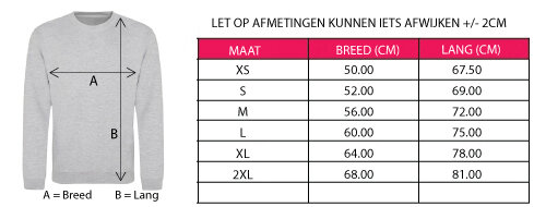 Maten XS t/m 2XL (zie afmetingen maattabel bij foto's)